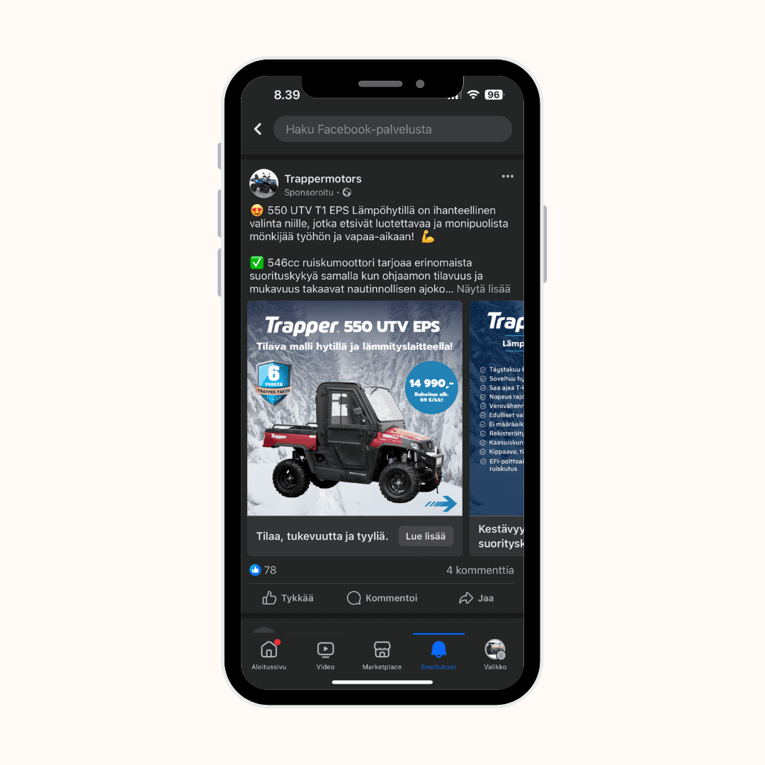 Somemainonta tarjoaa useita kiinnostavia tyylejä tuoda brändisi potentiaalisten asiakkaiden tietoisuuteen, kuten kuva-, video-, animaatio-, ja karusellimainosten keinoin.