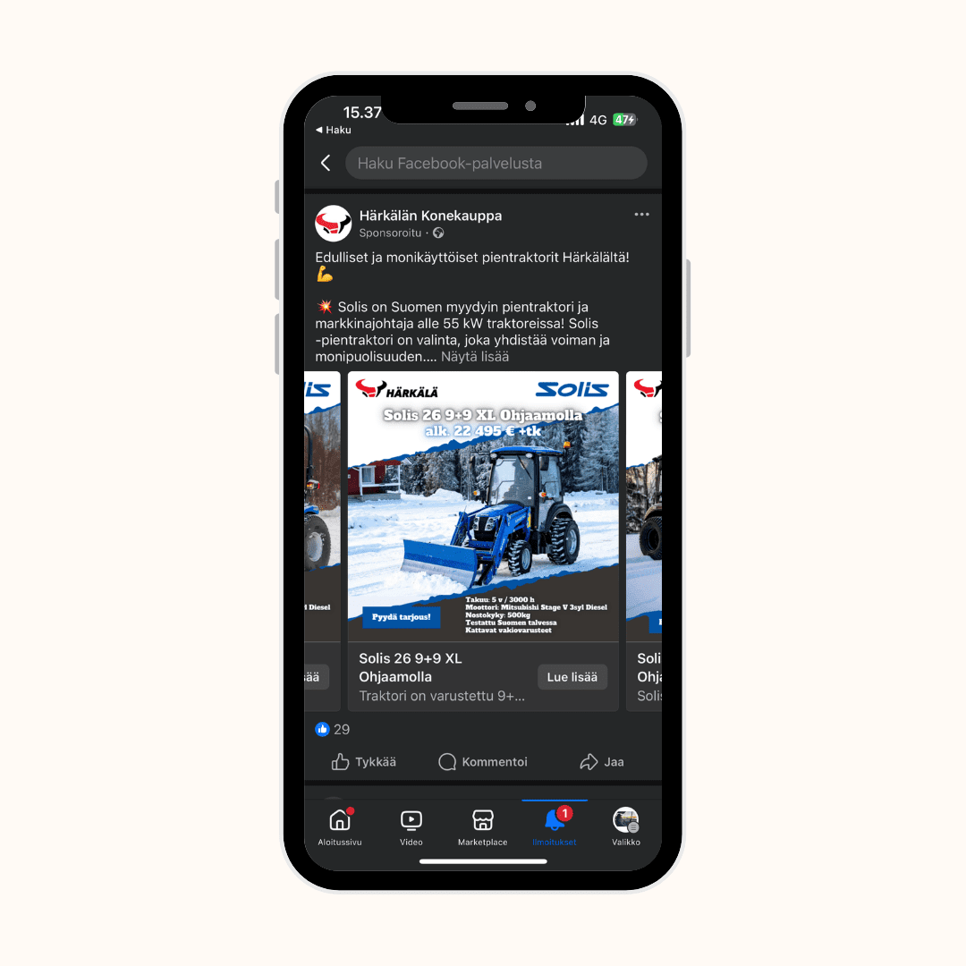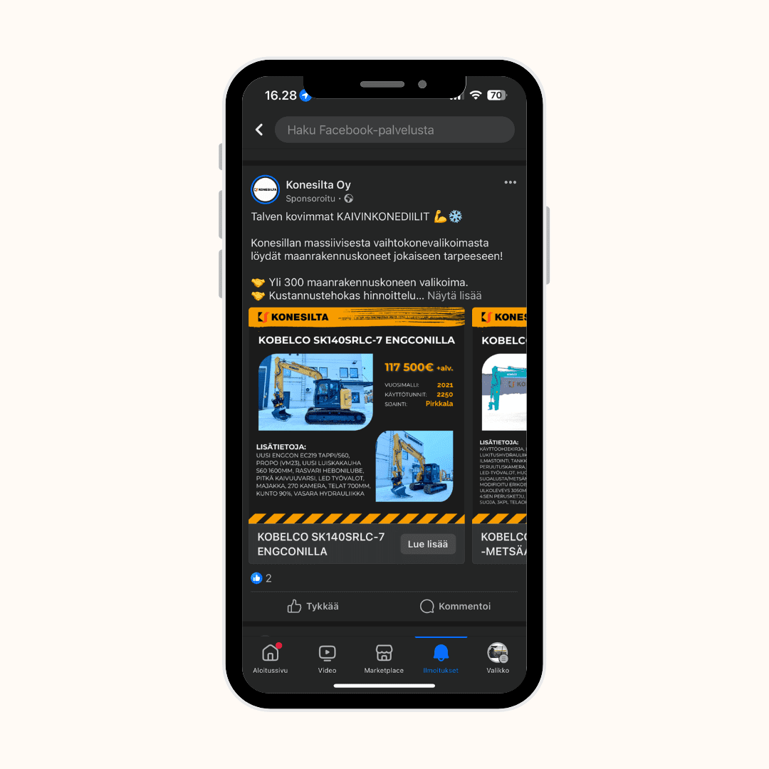 "Kasvu Designista on ollut suuri apu Konesillan somemarkkinointiin ja myytävien koneiden kohdemainontaan. Tulokset ovat nähtävissä suoraan konekaupassa ja yrityksemme näkyvyydessä."